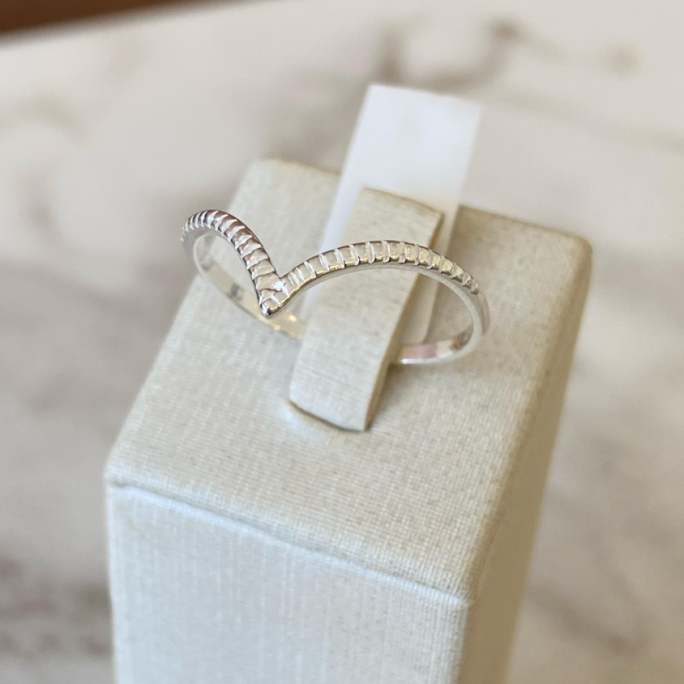 FECHARAnel em formato de V com acabamento riscado, trazendo um toque moderno e cheio de estilo. Produzido em prata 925, é uma peça versátil e elegante, perfeita para quem gosta de acessórios delicados, mas com personalidade. Ideal para usar sozinho ou em composição com outros anéis.