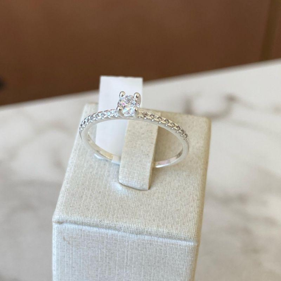 FECHARAnel Solitário em prata 925, com pedra central e laterais cravejadas com zircônias. Delicado e elegante, é perfeito para ser usado sozinho ou combinado com alianças, trazendo ainda mais brilho e sofisticação ao visual. (Consultar numeração disponível)