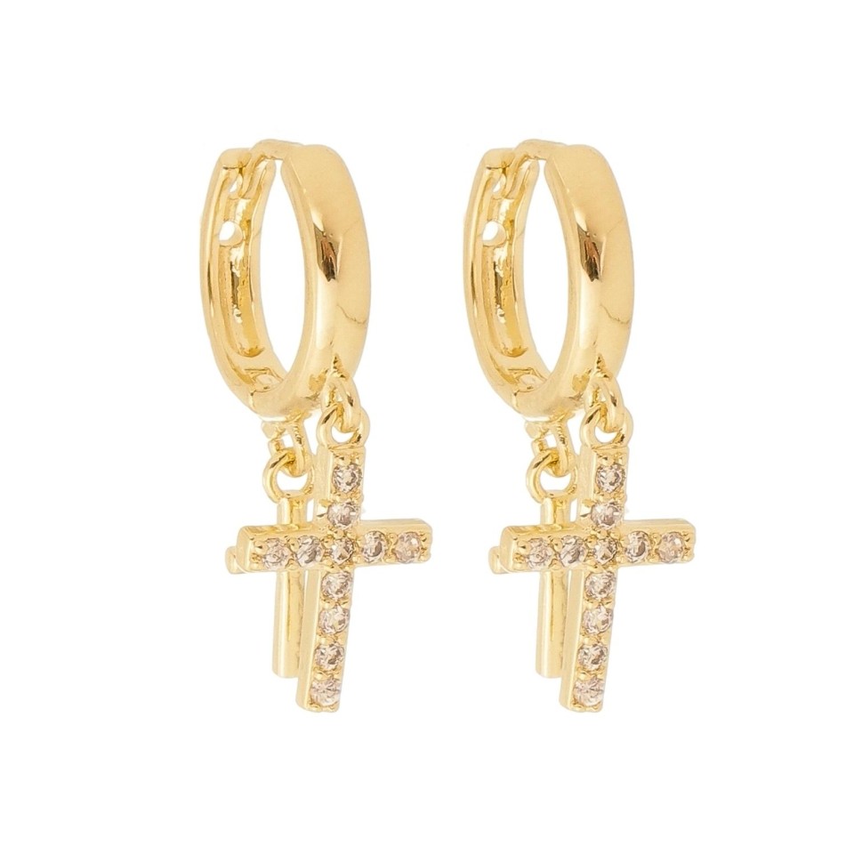 Brinco Argola Articulada com 2 Cruz