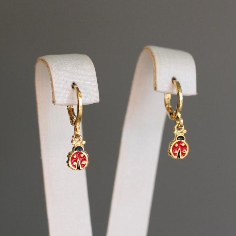 Brinco argola joaninha resinado