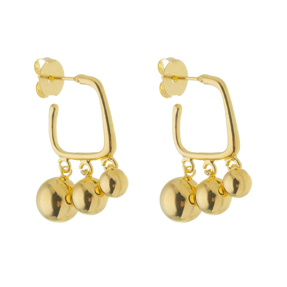 FECHARBrinco banhado a ouro 18k argola quadrada com três bolinhas articuladas.