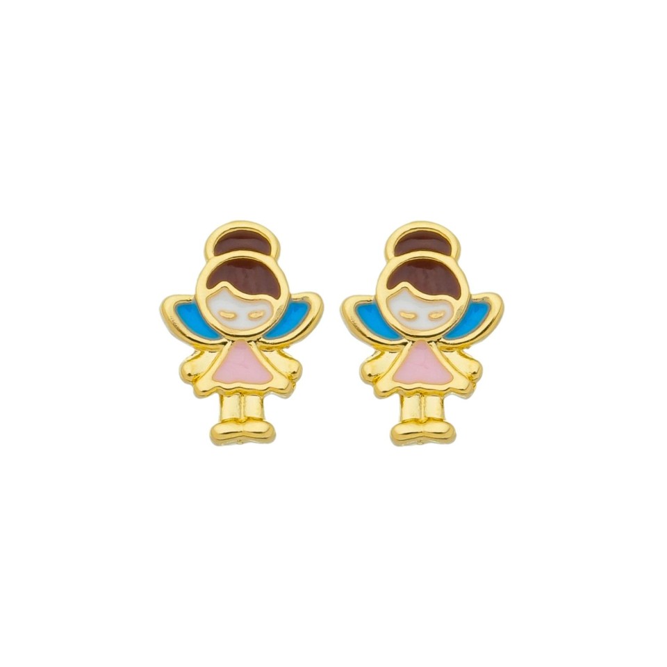FECHARBrinco infantil banhado a ouro 18k com formato de bonequinha de resina.