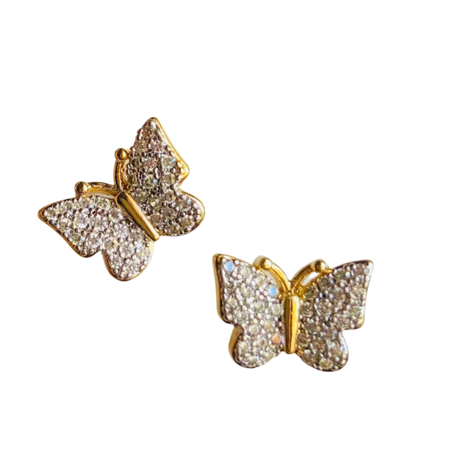 Brinco Borboleta Cravejada com Aplique de Ródio