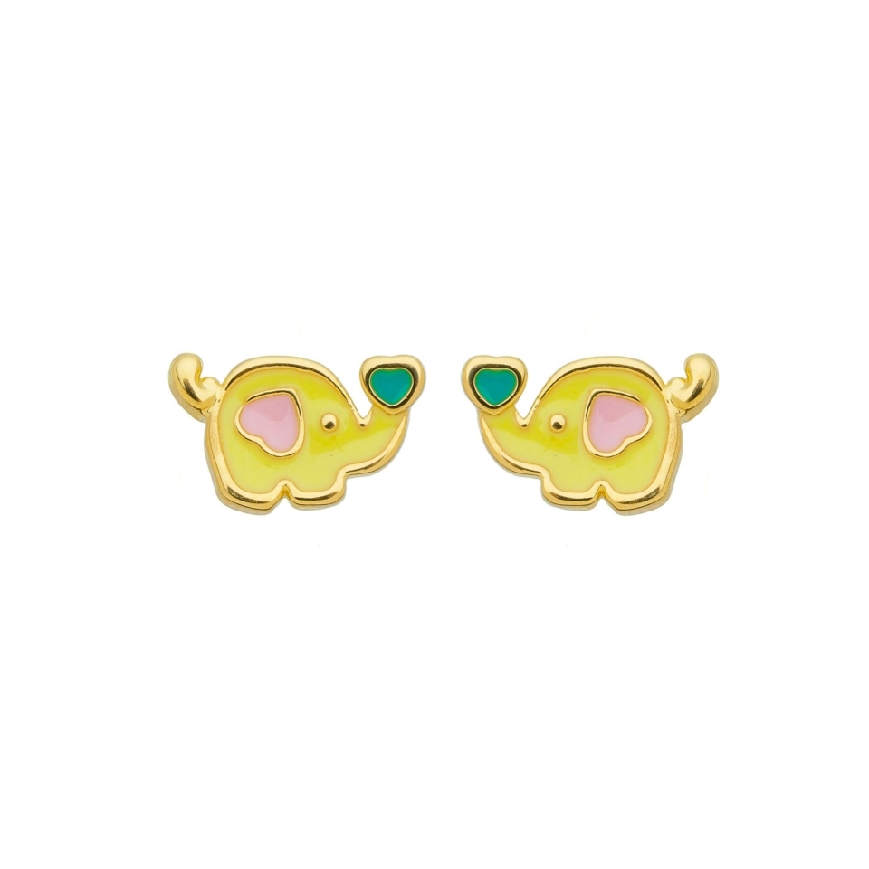 FECHARBrinco infantil banhado a ouro 18k com formato de elefante resinado.