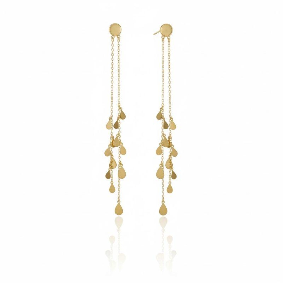 FECHARBrinco elo cadeadinho banhado no ouro 18k, tamanho G, com sete pingentes em formato de gota no decorrer do brinco.