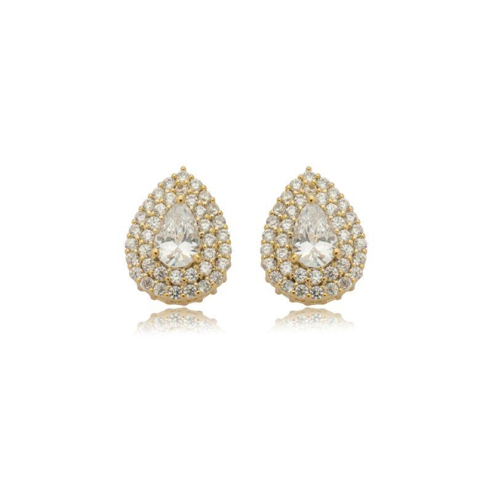 FECHARBrinco Gota Pizza 10 mm, produzido em semijoia com banho de ouro 18k. Modelo sofisticado, com acabamento em zircônias que proporcionam brilho intenso. Perfeito para compor looks elegantes e versáteis para o dia a dia ou eventos especiais.