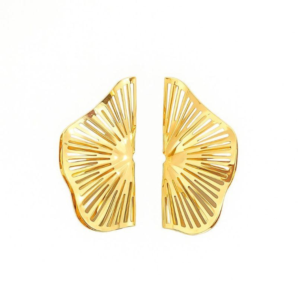 FECHARCom banho de ouro 18K e acabamento, o brinco possui brilho intenso e excelente durabilidade, além do banho hipoalergênico que garante conforto ao usar. Seu formato diferenciado em leque duplo transmite leveza e estilo, ideal tanto para ocasiões especiais quanto para compor looks do dia a dia com muito charme.