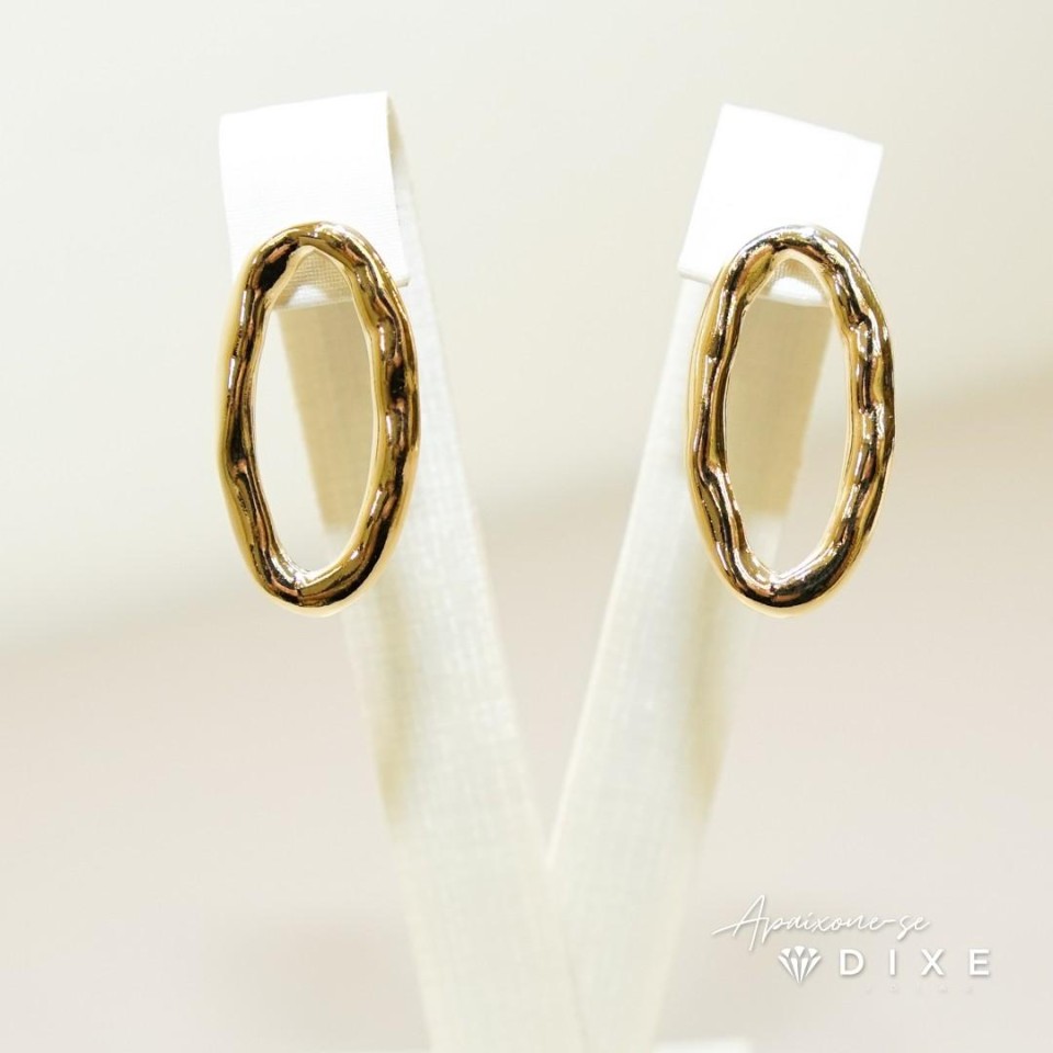 Brinco oval organico martelado
