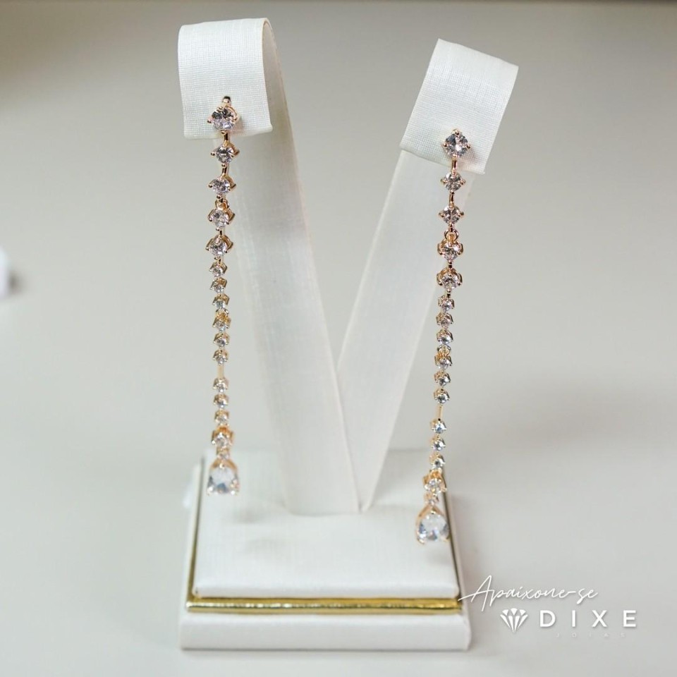 Brinco zircônia cristal fio longo