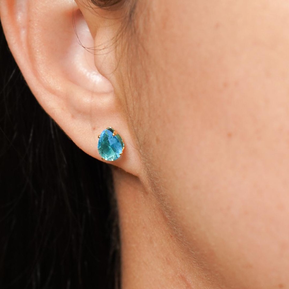 Brinco zircônia gota 6x8 azul claro