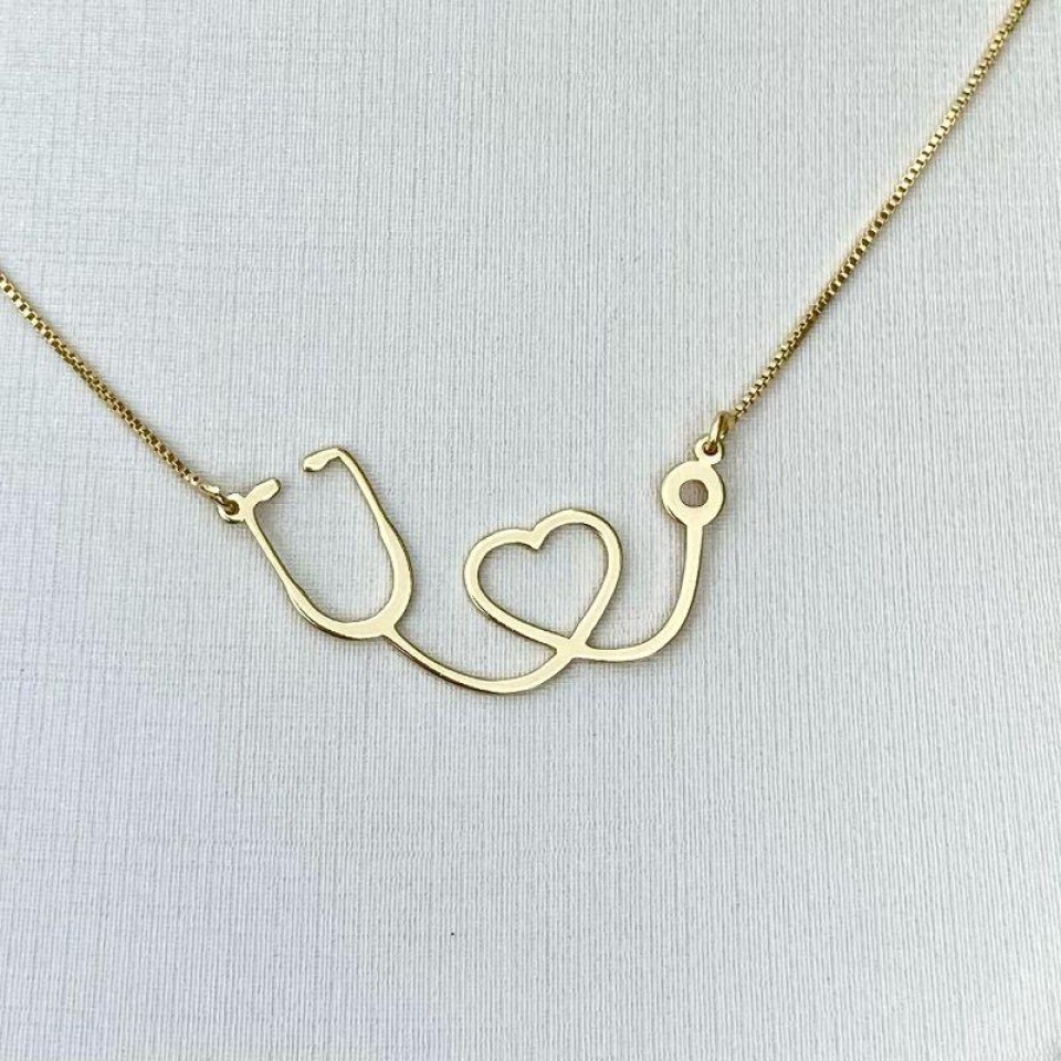 FECHARColar estetoscópio em formato de coração, perfeito para médicas, enfermeiras e profissionais da saúde que exercem a profissão com amor. Um acessório delicado, cheio de significado, que une elegância e homenagem. Ideal para presentear ou se presentear com algo que representa sua vocação.