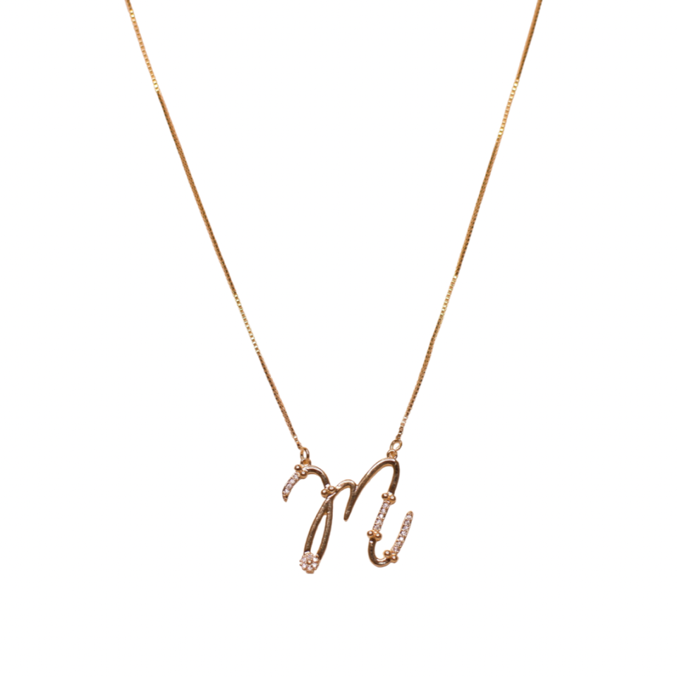 FECHARCorrente veneziana casadinha banhada a ouro 18k com pinente em letra manuscrita cravejada com micro zircônias.