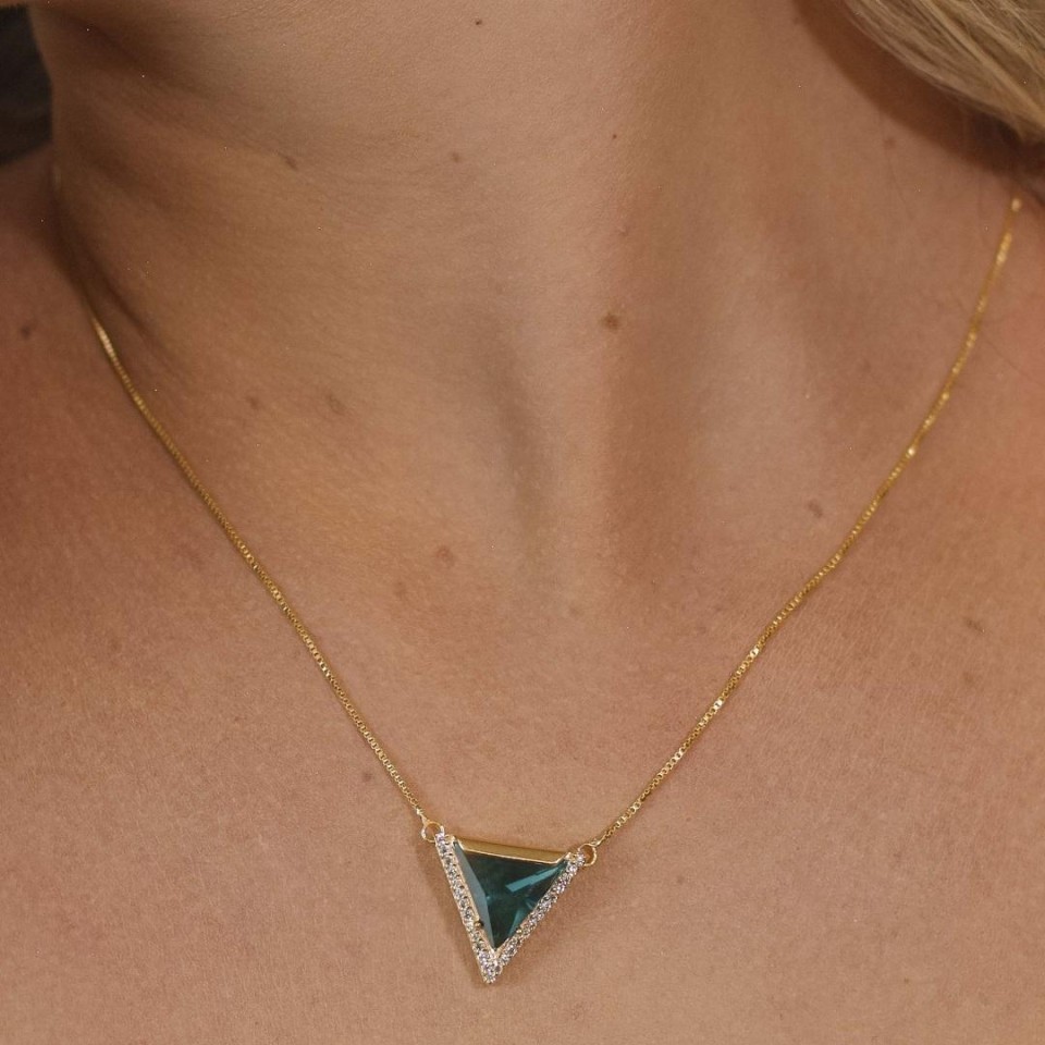 Colar Vivara zircôna safira triangulo