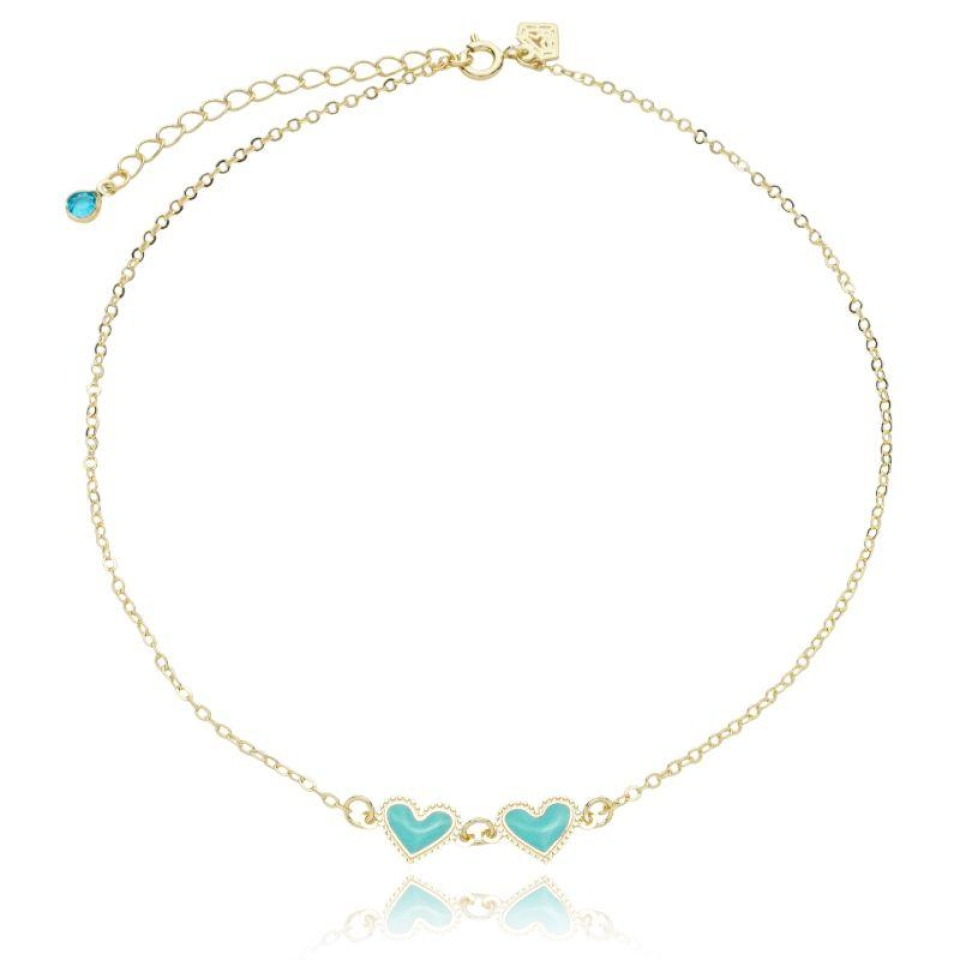 FECHARA Gargantilha Infantil Coração Resinado Tiffany é uma semijoia delicada e encantadora, feita especialmente para as pequenas que adoram um toque de cor e brilho. Banhada a ouro 18k, possui uma corrente fina e leve com pingente em formato de coração, com detalhe resinado na cor Tiffany, que traz um ar de doçura e sofisticação ao visual infantil. O extensor ajustável garante conforto e um encaixe perfeito no pescoço da criança. Além de linda, é hipoalergênica e livre de níquel, oferecendo total segurança para peles sensíveis.