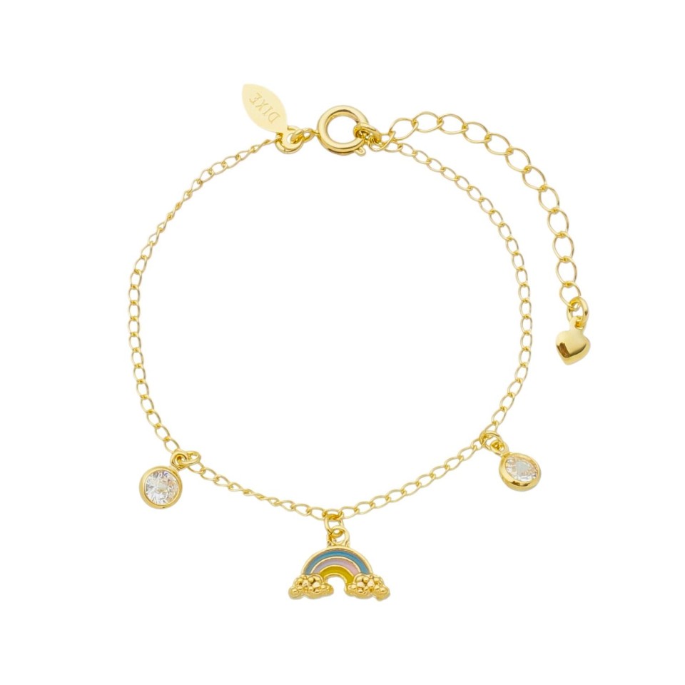 FECHARPulseira infantil banhada a ouro 18k com pingentes de arco íris e zircônias de cristal.