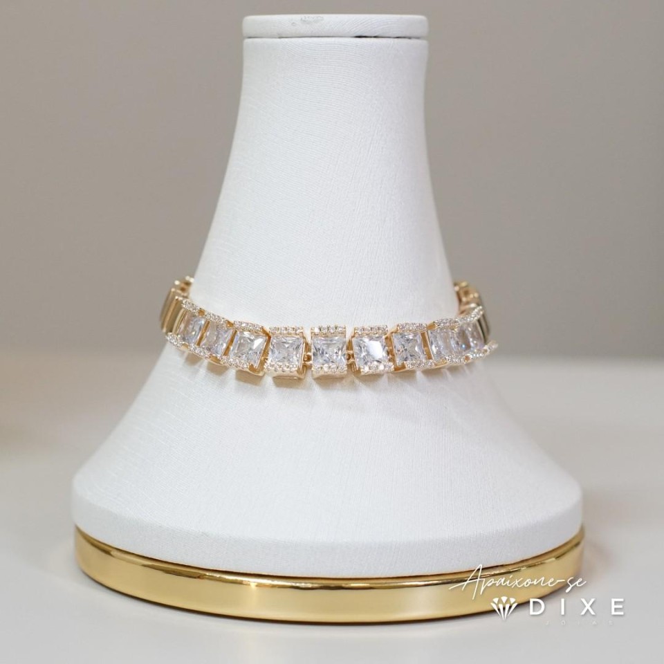 Pulseira quadradinho zircônia Cristal fecho gaveta